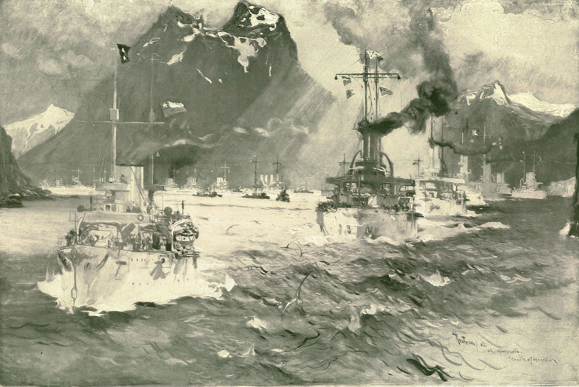 The Fleet passing through the Straits of Magellan, by Henry Reuterdahl
