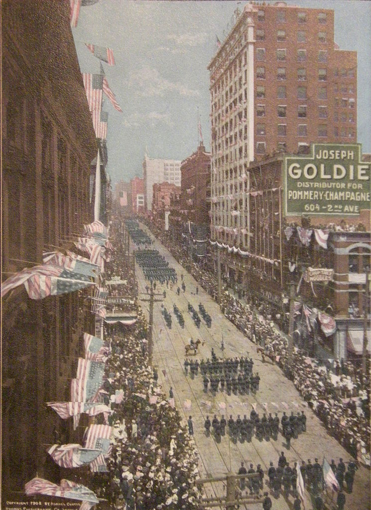 But before it set out towards the Pacific, the fleet was going to visit more of the West Coast. After 12 days in San Francisco, the fleet departed for Puget Sound, steaming along the coast so that the cities they passed could get a glimpse of the fleet. 400,000 people welcomed the fleet to Seattle in much the same way that it had been greeted at every previous stop. Then it was time for the fleet to disperse to the West Coast navy yards, so that the ships could be drydocked before beginning the long voyage home. Each ship carried a new passenger, a bear cub presented to act as the ship's mascot. These joined the growing menagerie on decks, which included at least one tiger.