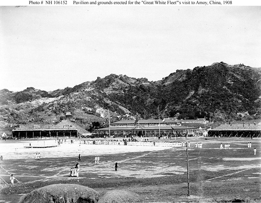 At this point, the fleet split. The First Squadron returned directly to Manila, while the Second was to call at Amoy, in southern China. This was the most diplomatically complicated of the fleet's visits, as Germany had been trying to set up a Sino-German-American alliance,2 and the Chinese initially read American acceptance of their invitation as a good sign. It was nothing of the sort, and when the US Navy pointed out that Shanghai did not have a suitable harbor, forcing the visit to be changed to remote Amoy and half the fleet to be sent to the Philippines instead, enthusiasm among the Chinese cooled. Peking still made great efforts to welcome the Americans, although they faced apathy and even fear among the citizens of Amoy, who believed the US was planning to seize their city as a base against Japan. Despite these and other complications, including an assassination plot by Chinese revolutionaries, spats among the US diplomatic corps in China and the Germans essentially crashing the party with one of their cruisers, the visit was fairly quiet. All festivities were held in a special reception area, and there was none of the spontaneity that had marked previous port calls, but the Chinese had done a remarkably good job under the conditions they faced. Soon, though, the visit was over and Second Squadron headed for Manila to meet up with the other half of the fleet.