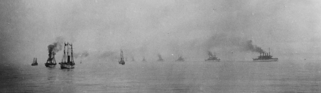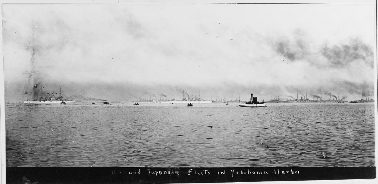 In 1907, Teddy Roosevelt ordered the US fleet deployed to the West Coast around South America as a test of its ability to fight a war with Japan. As it reached the Pacific, his administration decided to return it to the Atlantic by circumnavigating the globe. The second leg took it from San Francisco to Hawaii, New Zealand, and Australia. From Australia, the fleet set out for Manila, arriving on October 2nd to find a cholera outbreak waiting for them. All liberty was cancelled, and the fleet's main focus was on coaling, a brutal task in the heat of the Philippines. The only interruption was a typhoon, which pushed the departure back a day. Another storm struck as they made their way north to the visit at Yokohama, scattering the ships and washing a sailor overboard to his death. This prompted another day's delay, but the Japanese were able to rearrange the schedules to solve any problems this would have caused.