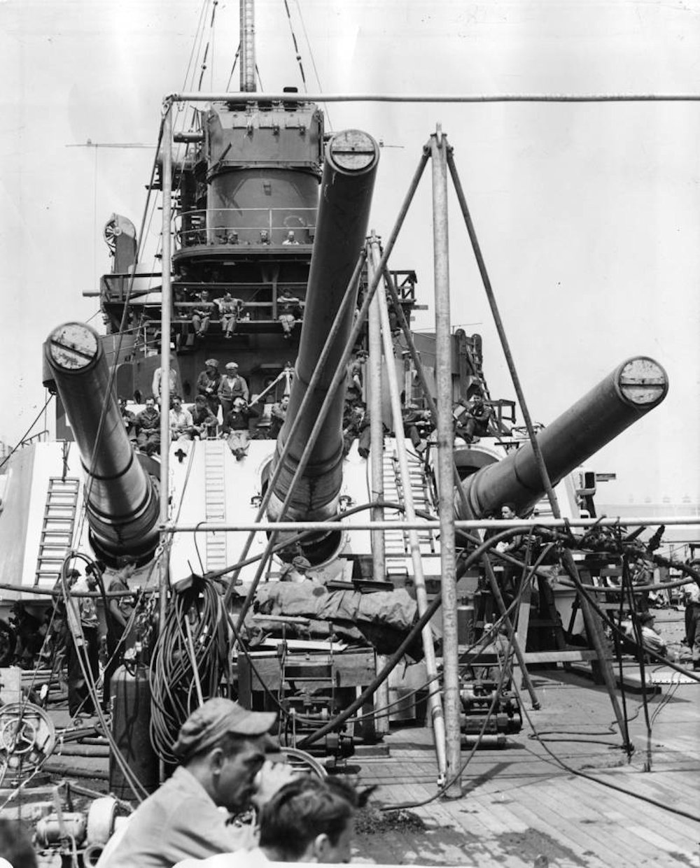 4 For reasons I have not been able to figure out, this apparently did not delay construction very much. In Britain, turrets were the pacing item in much battleship construction, to the point that Vanguard was built to take advantage of existing turrets. Both this case and the changes to the guns of the Iowas suggest this was not the case with American construction. ⇑