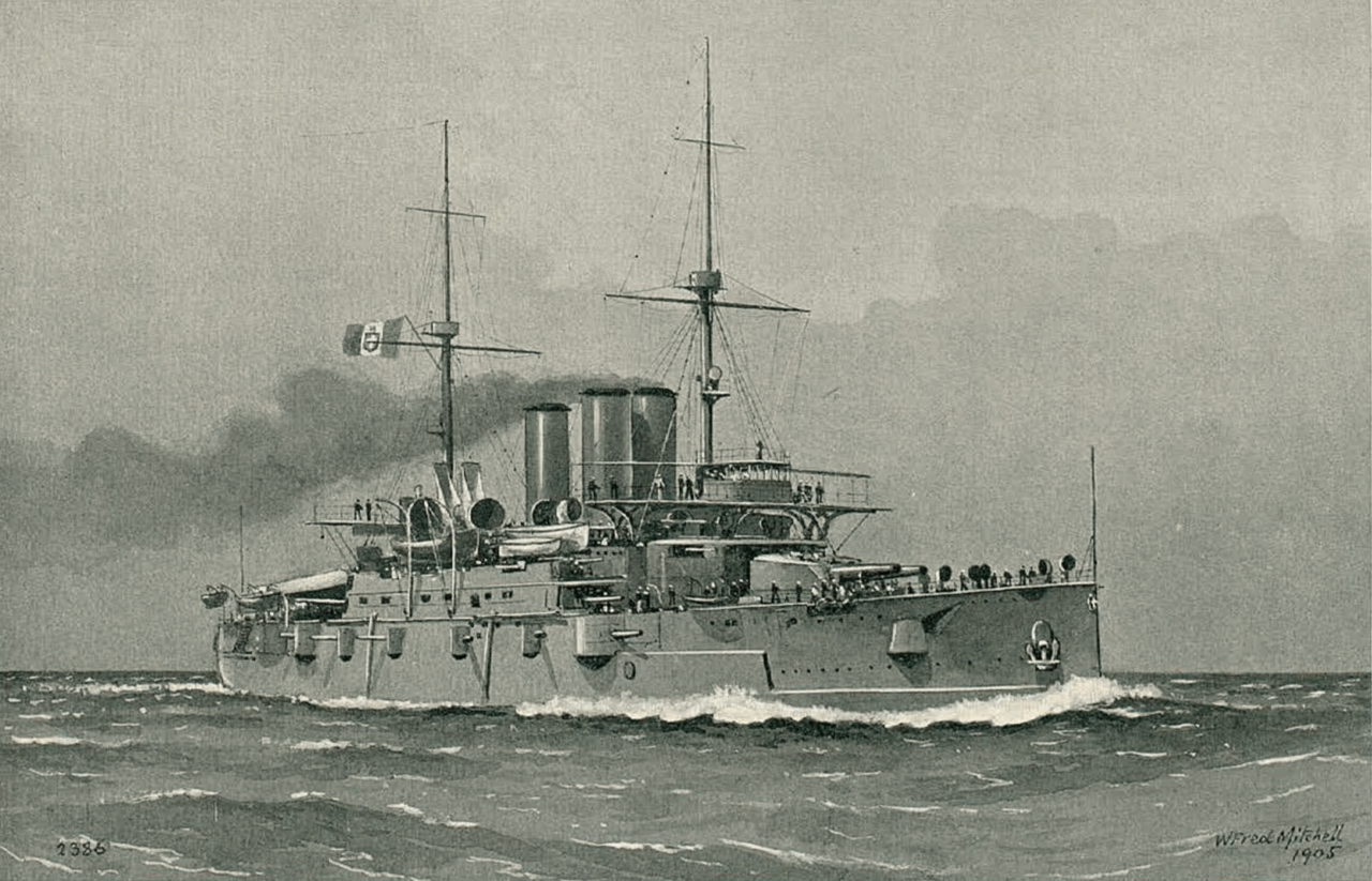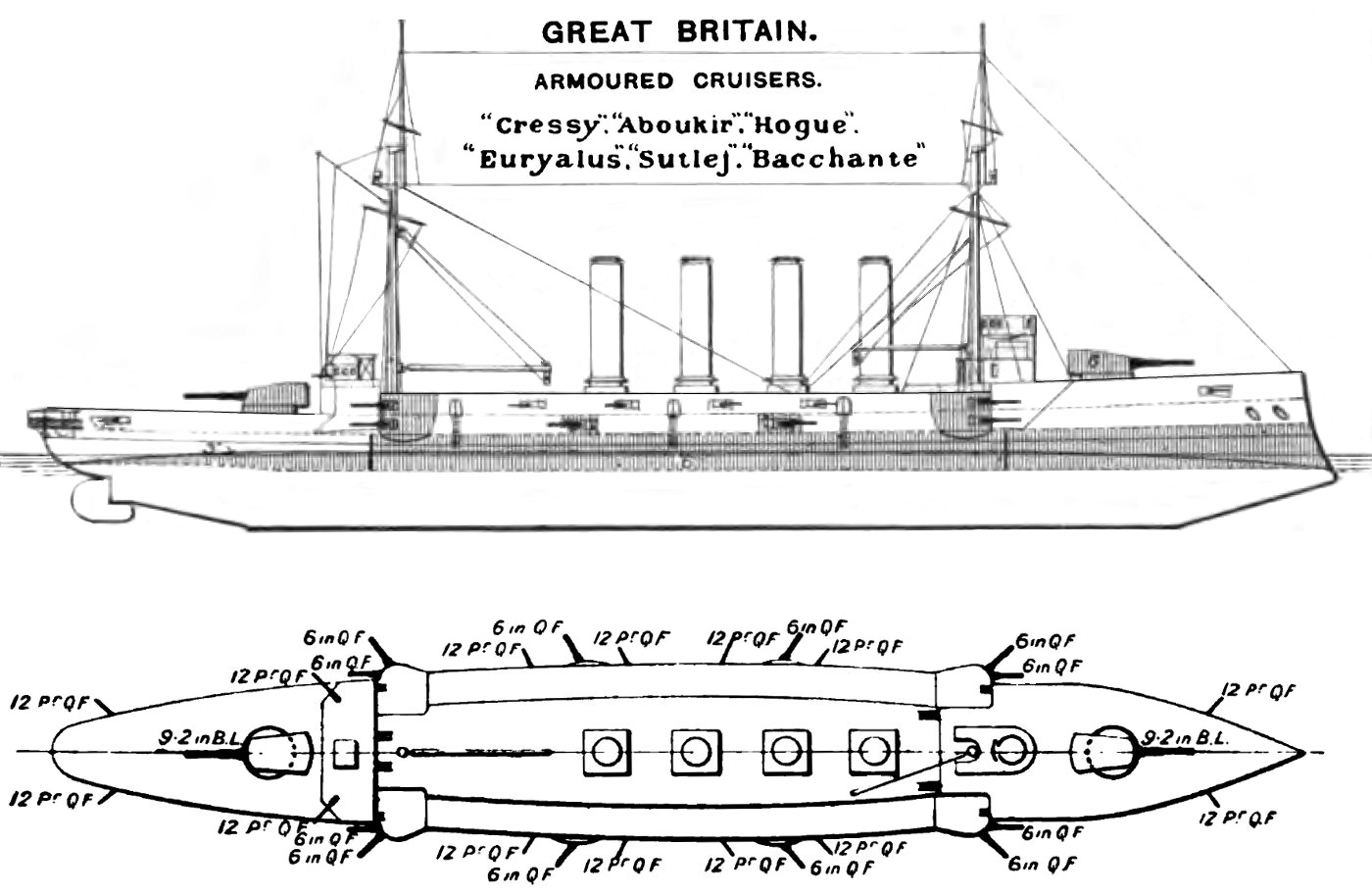 In Britain, Director of Naval Construction William White had recently developed a new and quite light protective scheme for the Canopus class battleships, which themselves were the last of the station battleships, falling outside the battlecruiser lineage primarily because of their speed. The development of Krupp Armor meant that the 6" belts of these ships were able to protect very effectively against 6" QF guns, and worked with their armored belts to keep even heavy-caliber shells out of the vitals. This arrangement opened the possibility of a cruiser that could function effectively as the fast wing of the battlefleet, protected against battleship shells and armed primarily with the QF gun battery which was increasingly seen as the main armament even of the battleships. The result was the Cressy class, a 21-kt version of Canopus that replaced the 4x12" big guns with 2x9.2" weapons. A sure sign of their intended role was the choice of endurance, which was to match the battleships they were to operate with.