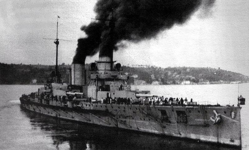 The gift of the two ships did much to swing Turkish public opinion in favor of the Central Powers, particularly after the British seized two ships building for Turkey and paid for by public subscription. On October 29th, Souchon, under the guise of taking his ships to sea, and with the concurrence of some Turkish officials, raided the Russian coast. Goeben3 bombarded Sebastopol, while Breslau shelled the grain port of Novorossiysk. Damage was fairly minimal, but it did force the Ottomans into the war a few days later.