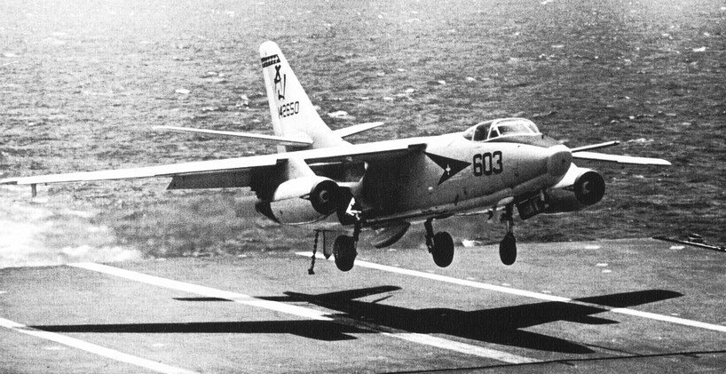 So shouldn't the score be something like "Factor of 1.5 on range, correct on payload"? Well, no. The problem is that the Vigilante wasn't really capable of delivering bombs. It used a unique linear bomb bay, storing the Mk 28, attached to a pair of drop tanks, in a tunnel between the engines. This was intended to allow the Vigilante to drop bombs while supersonic, a problematic task for a conventional bomb bay, but in practice, it didn't work very well. The ejection mechanism was unreliable and occasionally a catapult shot would leave the so-called "stores train" sitting on the ship's deck. But the worst failing had to do with aerodynamics, with the desired accuracy proving totally unachievable.7 Before this could be solved, the Navy's priorities shifted, with Polaris taking over the strategic attack mission. The Vigilante only made four operational deployments as a bomber before the bulk of the fleet was converted to the RA-5C reconnaissance configuration, none aboard Forrestal, and even on those deployments, only a very marginal capability was provided.8