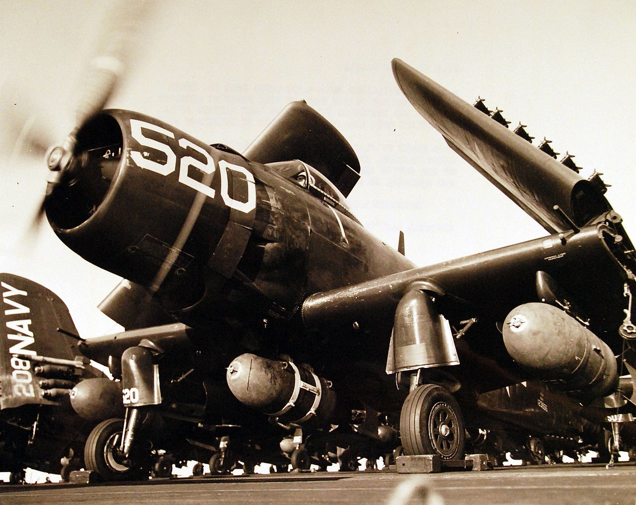 First, the AD-1 isn't the appropriate variant. Improved models entered service quickly, and a 2014 book lists every air wing that Forrestal ever carried, none of which included a version earlier than the AD-6 in the attack role. But I will attempt to take Dr. Hendrix's statements at face value, and look at the planes he said he analyzed. The SAC archive also doesn't have an AD-1, so I decided to go with the AD-4, the earliest available. This lists three missions, one of which involves a radar pod and can thus be ignored. Of the other two, one is a long-range mission with drop tanks, and carries 3,680 lb of ordnance with a combat radius of 540 nautical miles. The other is a short-range mission without drop tanks, and carries 5,680 lb of ordnance to 220 nm. The first is the sort of thing you'd expect for a deep-strike mission, and it doesn't come close to 1,000 nm or 8,000 lb of ordnance. Looking at the numbers, it seems like he might have confused radius and range, which is a perfectly understandable mistake for a random person on the internet, but much less so from a professional. It's also incredible that he assumed the max warload the plane was designed to carry was the relevant payload, as an AD loaded with that many bombs would probably have a combat radius about equal to the takeoff roll.