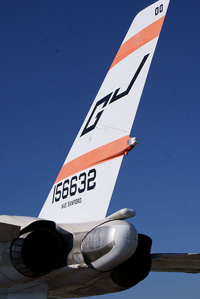 The tail of a Vigilante, showing the back end of the linear bomb bay, here plugged by the temporary tail cone of an RA-5C reconnaissance model.
