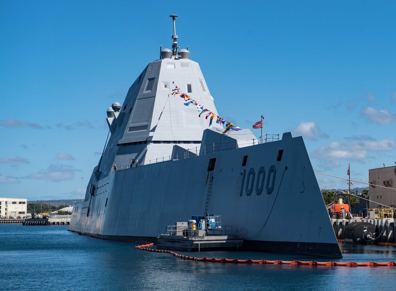 And the unique nature of the ships has not helped things as they've moved closer to service. In late 2017, the Navy noticed that the original mission of its shiny new destroyers didn't make sense, thanks to changing strategic circumstances and the lack of LRLAP. Instead, it was decided that the new ships would be tasked with surface strike, using missiles against both ships and surface targets. Of course, this required an anti-ship missile, which the USN is short on. Harpoon is right out, because the standard launchers would wreck the ship's stealth (not to mention a lack of places to put them), while Tomahawk doesn't have great anti-ship capability and LRASM doesn't seem to be in vertical-launch form yet. In practical terms, the change in missions seems like it was primarily a way for the Navy to pretend that they didn't spend billions of dollars on ships that are essentially useless in combat. The current plan is to remove the AGS and install a dozen of the imaginatively-named Long-Range Hypersonic Weapon, although this has been delayed from 2025 to 2027, and it's not clear if they will work any better than anything else connected to the Zumwalt.