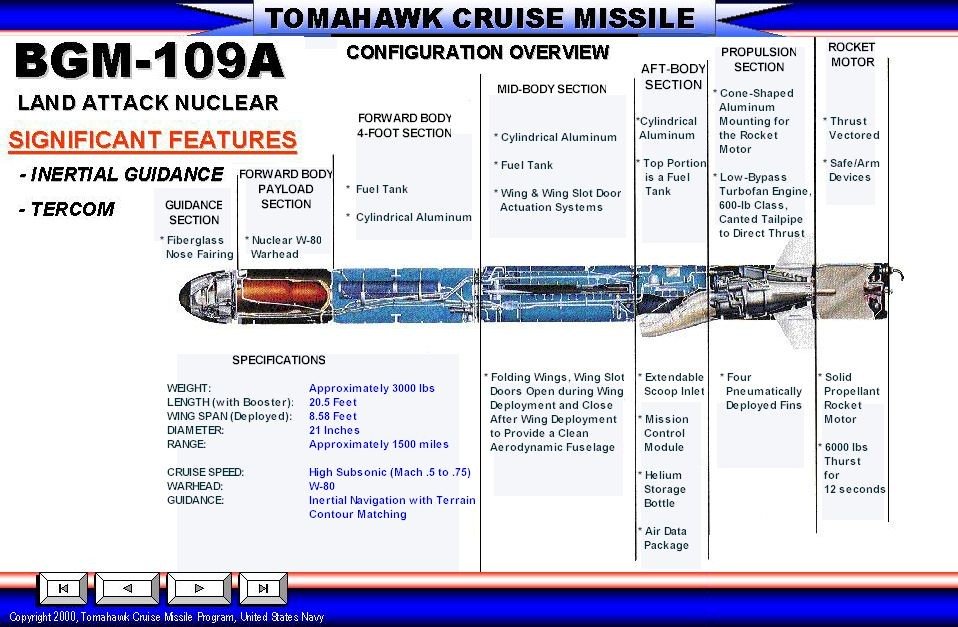 1 This is the weapon that triggered the well-known protests at Greenham Common. I'm not going to go into detail on it because it's the weird stepchild of the Tomahawk family. ⇑