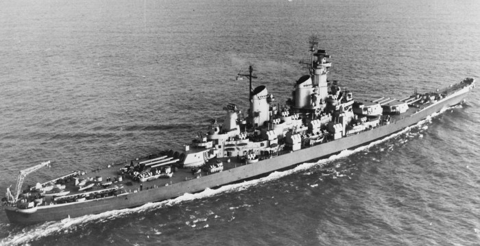 The second was six days later, part of the string of naval battles that occurred off of Guadalcanal. After a rather messy battle between a US cruiser-destroyer force and the Japanese two days earlier, Admiral Halsey detached the fast battleships Washington and South Dakota from his carrier screen and sent them in to prevent the Japanese, led by the old battleship Kirishima, from bombarding US positions on the island under cover of darkness. An initial clash between the American destroyers and the Japanese did not go well, leaving two ships on fire and sinking. South Dakota’s participation was scarcely more dignified, first setting one of her own airplanes on fire with her guns, then losing most of her guns and her radar to a circuit breaker problem. The Japanese found her after she steered in front of one of the burning destroyers, hitting her 27 times (although only once by Kirishima’s 14” guns), and compounding the electrical problems with numerous short circuits. Washington, however, had remained undetected, and opened fire on Kirishima at 8,400 yards, landing 9 hits from 75 16” shells fired, without taking a hit. Kirishima sunk about 3 hours later.