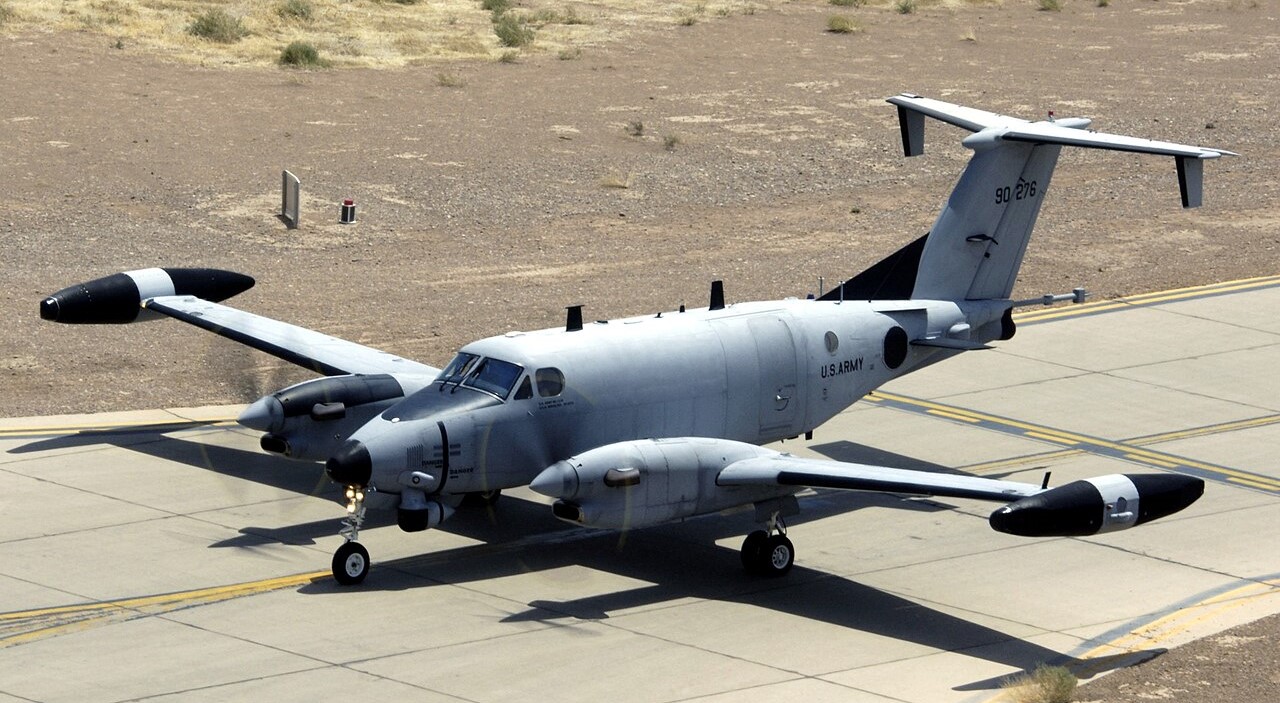 A modified King Air set up for gathering information. Primarily operated by the Army for tactical signals collection, although other services seem to operate variants for when they need to have a fancy camera in the air at a reasonable cost with a person attached.