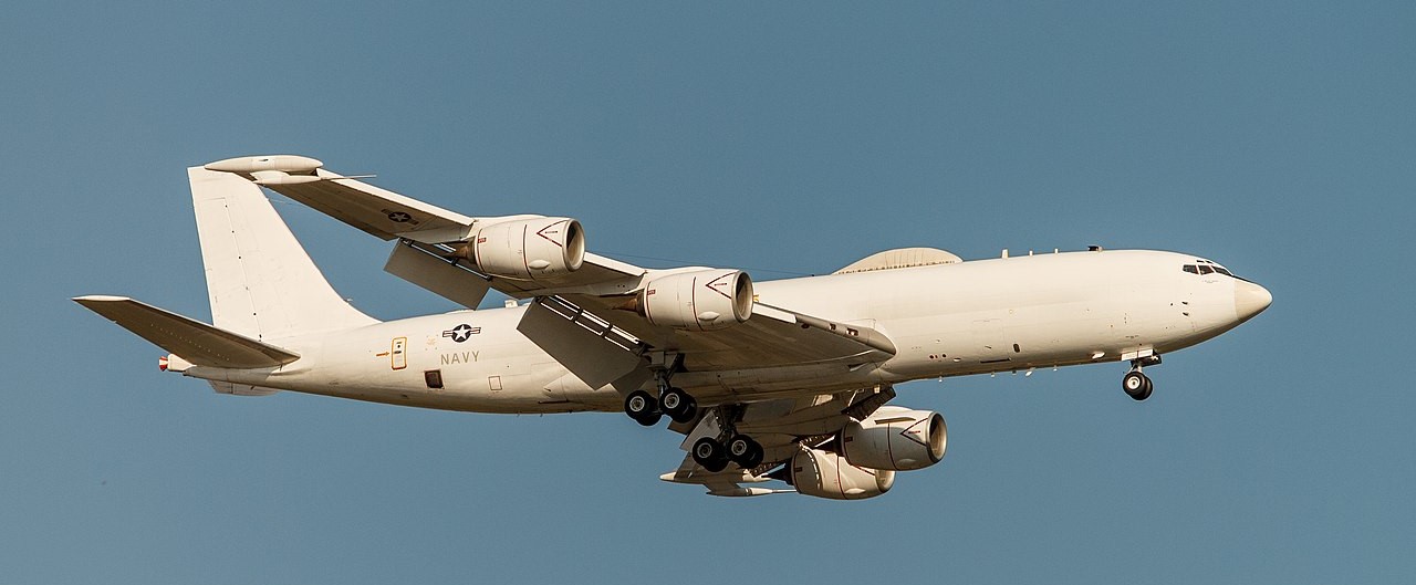 Another product of the US Military's inexplicable love affair with the Boeing 707, the E-6 is operated by the Navy to provide survivable communications with the nation's ballistic missile submarines. It carries a 10 km antenna, which is held vertically by the airplane flying in a circle, and can be used to send low-frequency radio signals to submerged submarines, as well as passing launch orders to land-based ICBMs. The E-6 is in the twilight of its career, and will soon be replaced by a C-130 variant that for some inexplicable reason has been dubbed the E-130J.