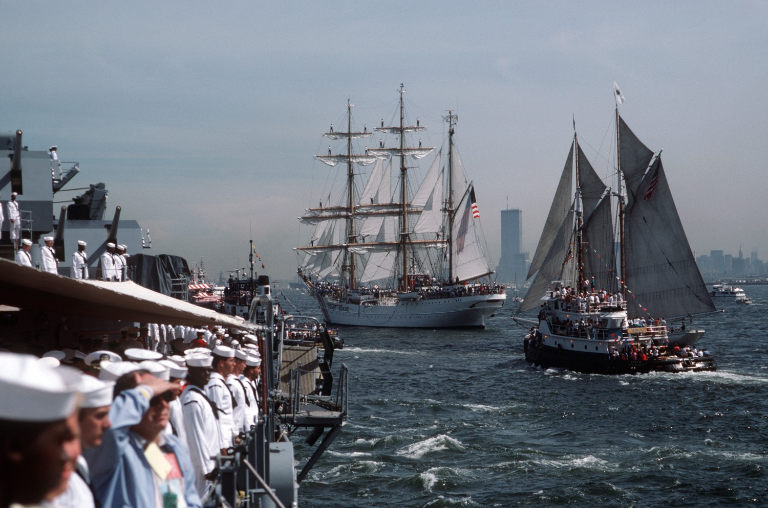 Eagle also serves as the nation's representative to various gatherings of sailing ships, frequently held to mark significant events in maritime or national history. The American version, Operational Sail, has been held in 1964, 1976, 1986, 1992, 2002 and 2012, with another upcoming for the US Semiquincentennial in 2026. Eagle has served as host vessel for all of these, and frequently won the sailing race held at the start of each. She has also participated in events hosted by others, such as the Trafalgar 200 fleet review and Velas Sudamerica 2010, to celebrate the bicentennial of Argentina and Chile. Also notable was her 8-month cruise to Australia in 1987-1988, with classes for cadets continuing onboard during the trip.