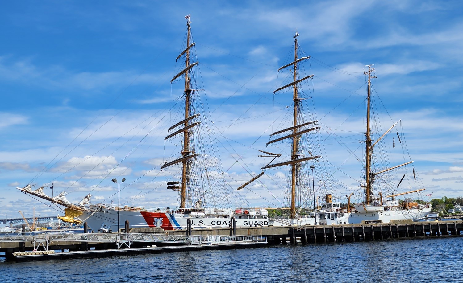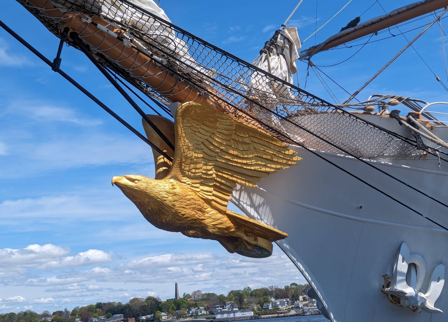 Obviously, Eagle has been modernized over the years, with a new diesel engine, more comfortable living quarters, and facilities for female cadets. A notable early modernization was to the figurehead, which now clutches a Coast Guard emblem instead of the original swastika. Swastikas kept showing up under the paint for decades, although they may have finally stripped her down to bare metal to remove the problem. As far as I am aware, there are no plans to replace Eagle, now approaching her 90th birthday, and she will continue to train cadets for decades to come.