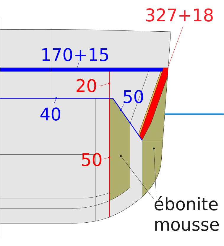 The last of the treaty battleships, the French Richelieu class, had a very effective TDS of their own, deep and of largely conventional design, with an interesting twist. A material called Ebonite Mousse was installed in some of the void spaces. This was the last in a long line of attempts to use something that would prevent flooding into void spaces when the system was damaged. Most early attempts had failed, notably the use of wood pulp, which rotted. However, the Ebonite Mousse, a gum rubber foam, was a success, requiring little maintenance and proving effective in tests.