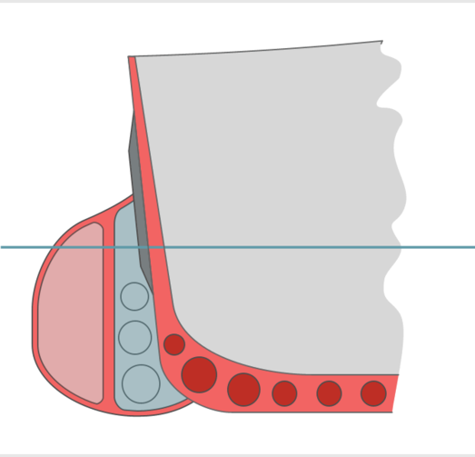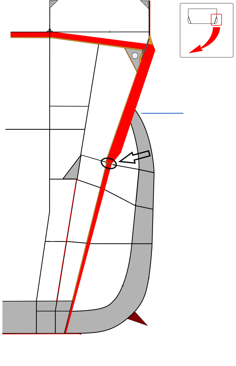 A torpedo bulge, showing outer air chamber (red) and inner free-flooding section (blue)2