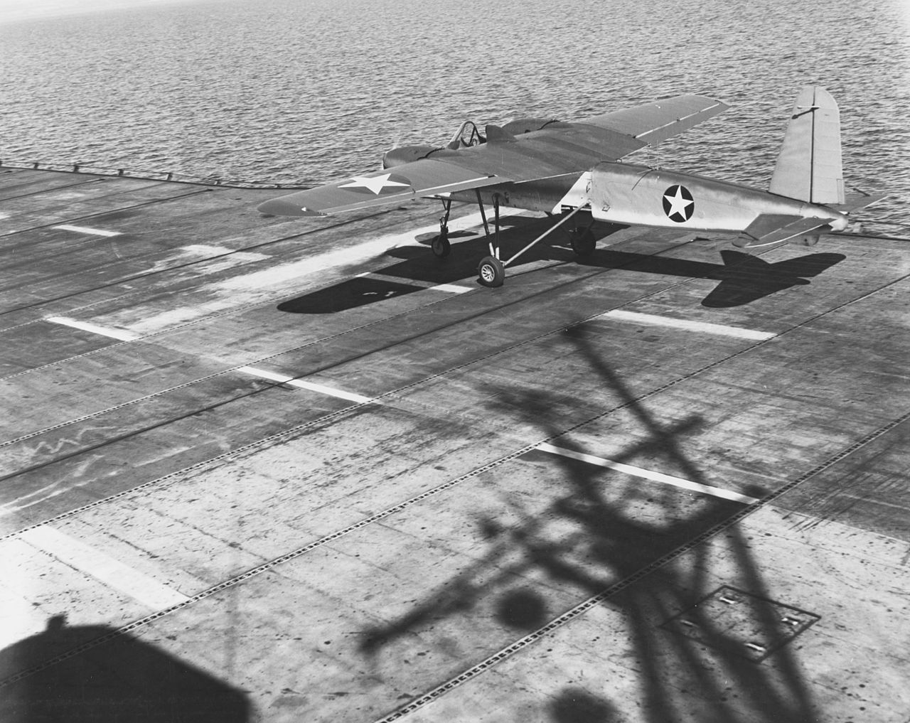 Wolverine’s conversion began in March 1942, and she was commissioned that August before transferring to Chicago to begin training pilots on Lake Michigan the next January. Sable began her overhaul in late 1942, and commissioned in May 1943, going to work almost immediately. Both ships were based at Chicago's Navy Pier, gaining the moniker of the "Corn Belt Navy". The conversions were quite rudimentary, with a simple flight deck and a mock-up island like the ones on combat carriers. The 535' deck was about the same as the deck on an escort carrier, although it was considerably lower to the water. Wolverine’s deck was wood, but Sable had the first metal flight deck in USN service, and tested a number of antiskid coatings for it. She also served as the trials ship for the TDN drone, including the first free takeoff of an unmanned aircraft from a carrier.3 There was no hangar or catapult, which meant that any aircraft damaged on landing would be stuck on deck until the ship returned to port. There was some space to store them forward of the island, but if too many planes were banged up by clumsy students, the carrier would have to return to Chicago immediately.